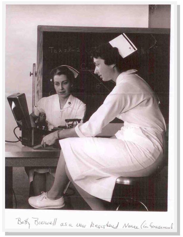 - "I describe my first clinical experience as extremely busy with a heavy patient load. We did a lot of On The Job Training (OJT). In the nurses station if a doctor or registered nurse came in we had to stand for them." – Betty (Bonwell) Paps, '58